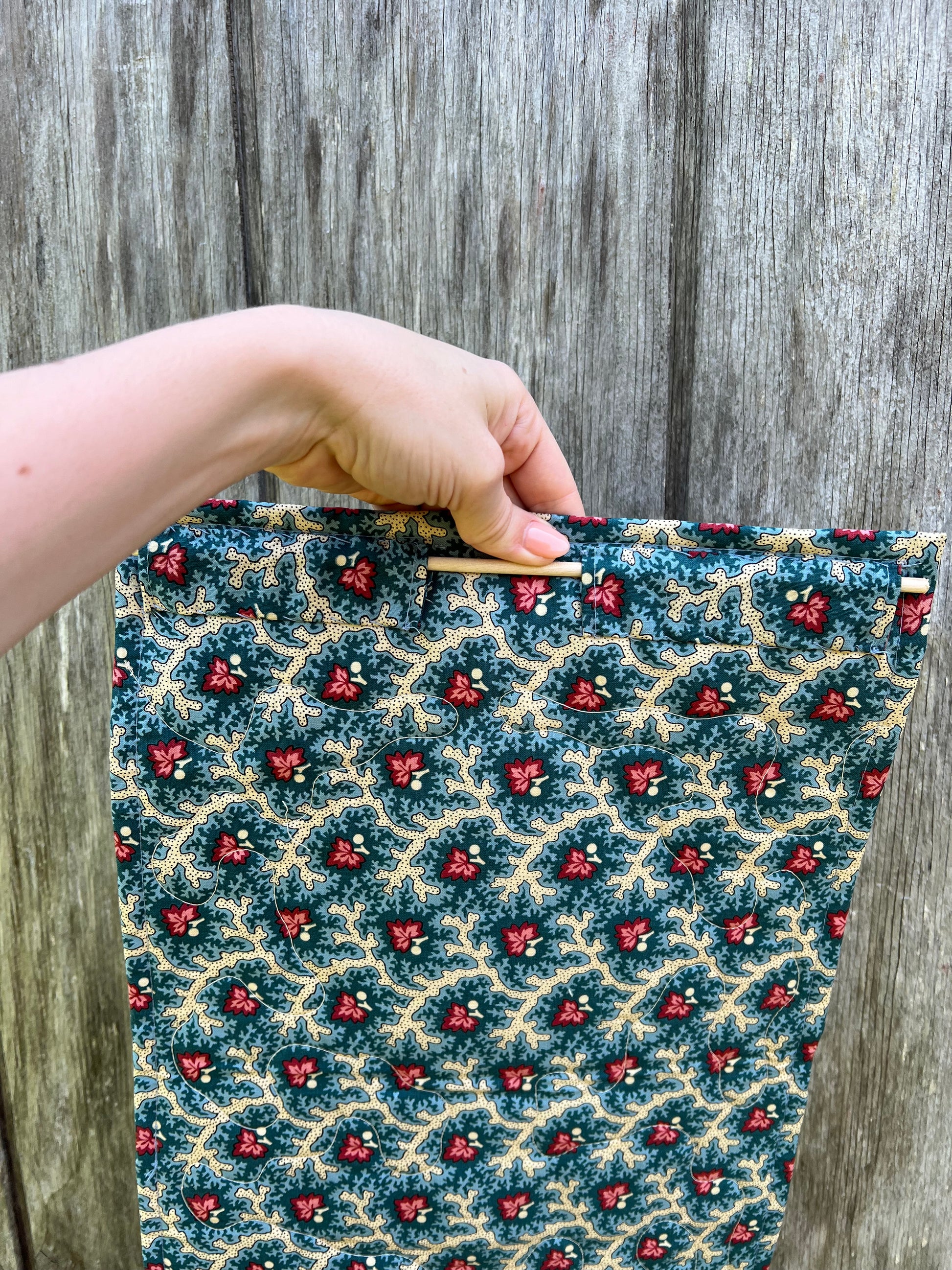 Add a touch of country charm to your door with our Bloom Door Banner! This small wall quilt features a scrappy border and appliqued design for a cozy, homemade feel. Complete with a jute bow, it's the perfect way to welcome spring into your home.