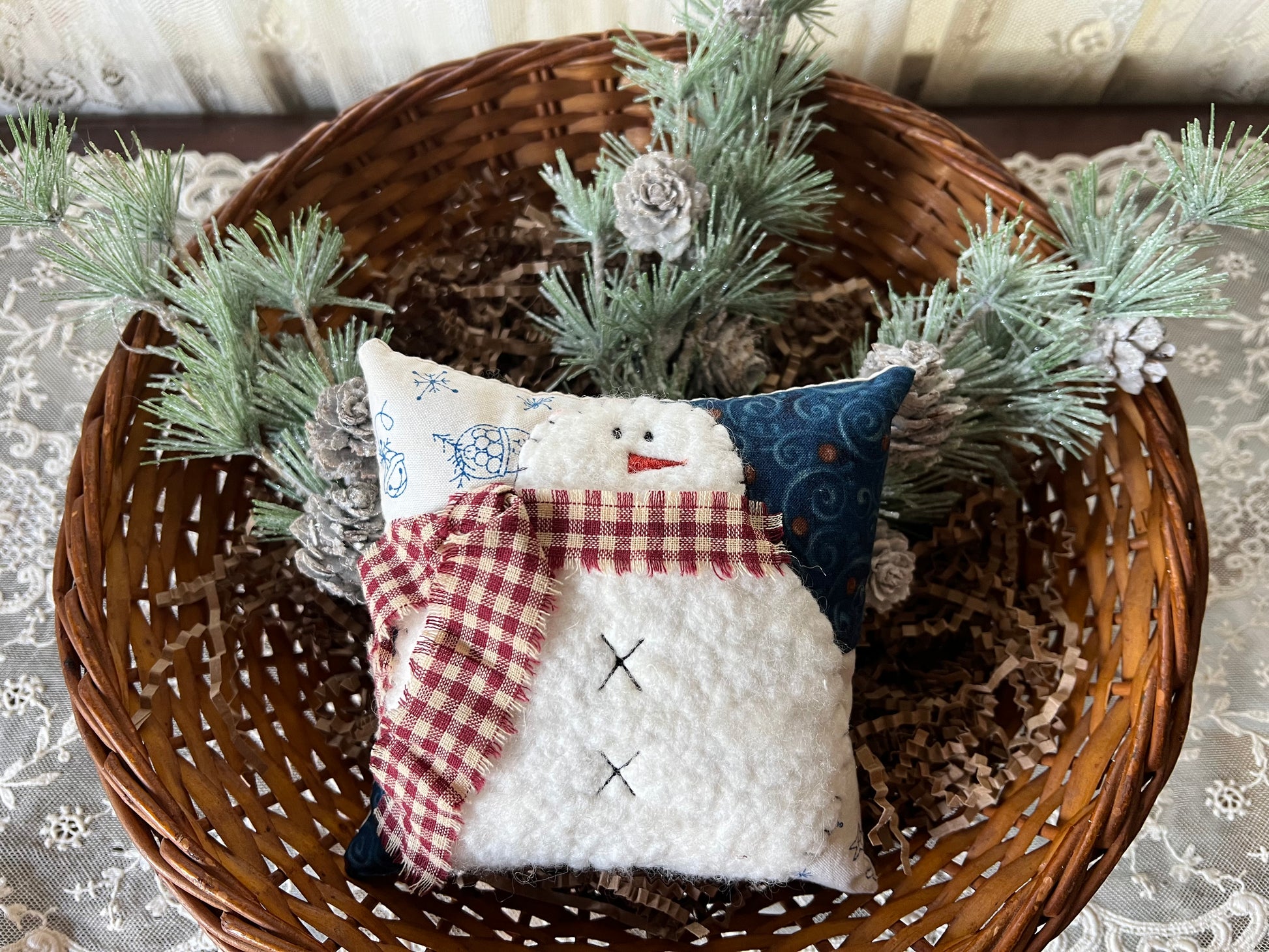 Add some charm to your winter decor with our playful Mini Snowman Pillow! Embroidered details, a cute scarf, and quilted design make it a standout piece. This pillow is perfect for bowls, baskets, or shelves and measures 5.5" x 5.5". Available in two sizes. (Snow)man, this pillow is just too cute to resist!