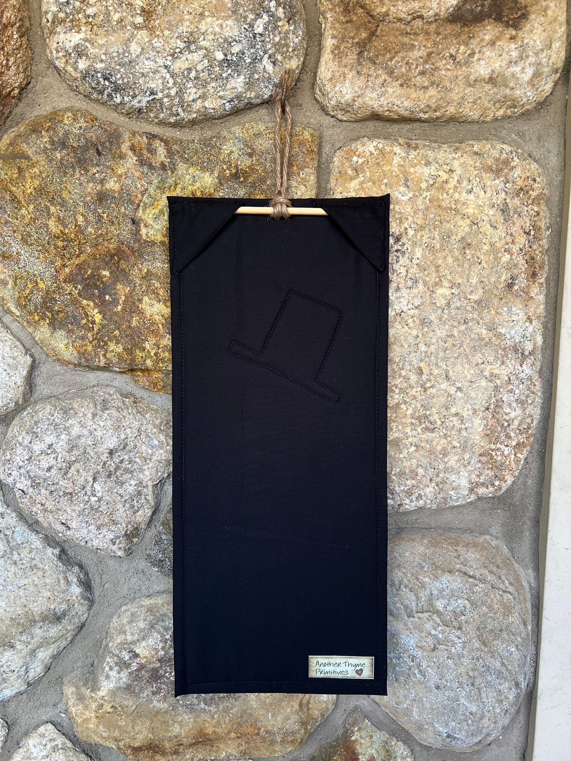Bring a touch of cozy country charm to your home this winter with our Mini Snowman Banner. This smaller sized banner is perfect for those hard-to-decorate spots and features a charming snowman with a playful scarf made of cranberry checkered homespun. With a hat made of black wool and stitched eyes, this banner is sure to add a festive and quirky touch to your holiday decor. Measures 17.5" long by 7.5" wide and easy to hang with a wooden dowel and removable jute twine.